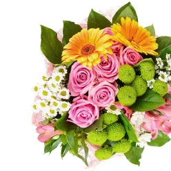 Букет из розовых роз и альстромерийНежная любовь