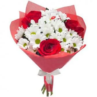 Вариант—Стандарт - кустовая хризантема - 3 шт., роза - 3 шт., упаковка лента