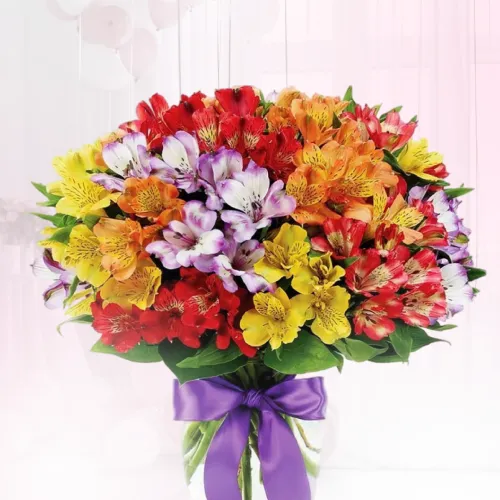 Этот яркий, сочный букет, состоящий из разноцветных альстромерий, передаст всю вашу теплоту и заботу !
