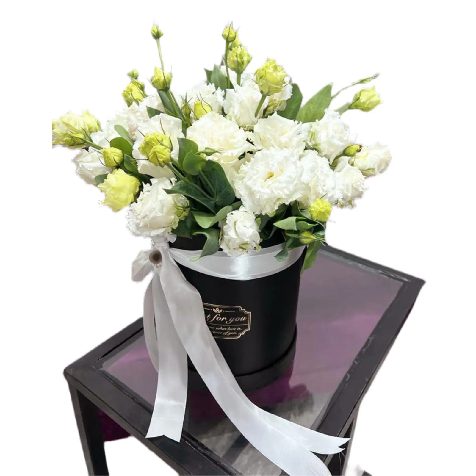 Белая эустома  в стильной, оригинальной  коробке понравится каждому !