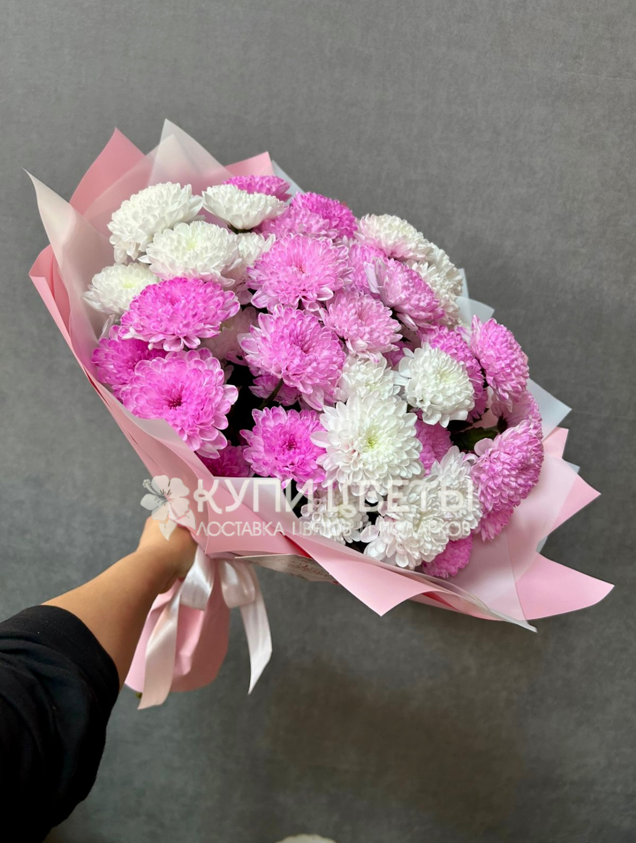 Состав букета: Кустовые хризантемы,упаковка,лента
