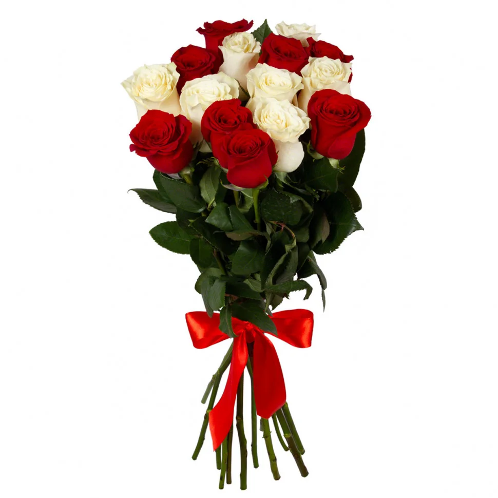 Классическое  сочетание красных и белых роз под ленту выглядит очень ярко, стильно и привлекательно. Такое сочетание цветов всегда в моде.  Если вы не можете выразить чувства словами, в этом вам всегда помогут цветы.