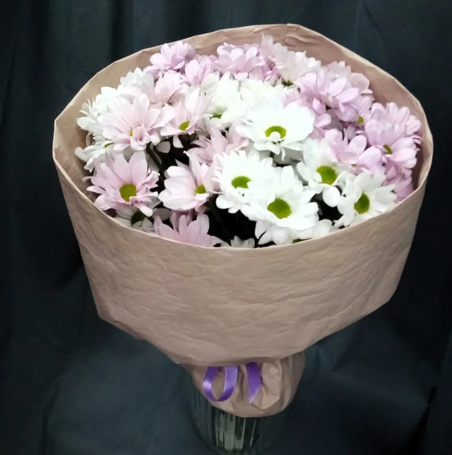 Кустовые хризантемы,упаковка,лента