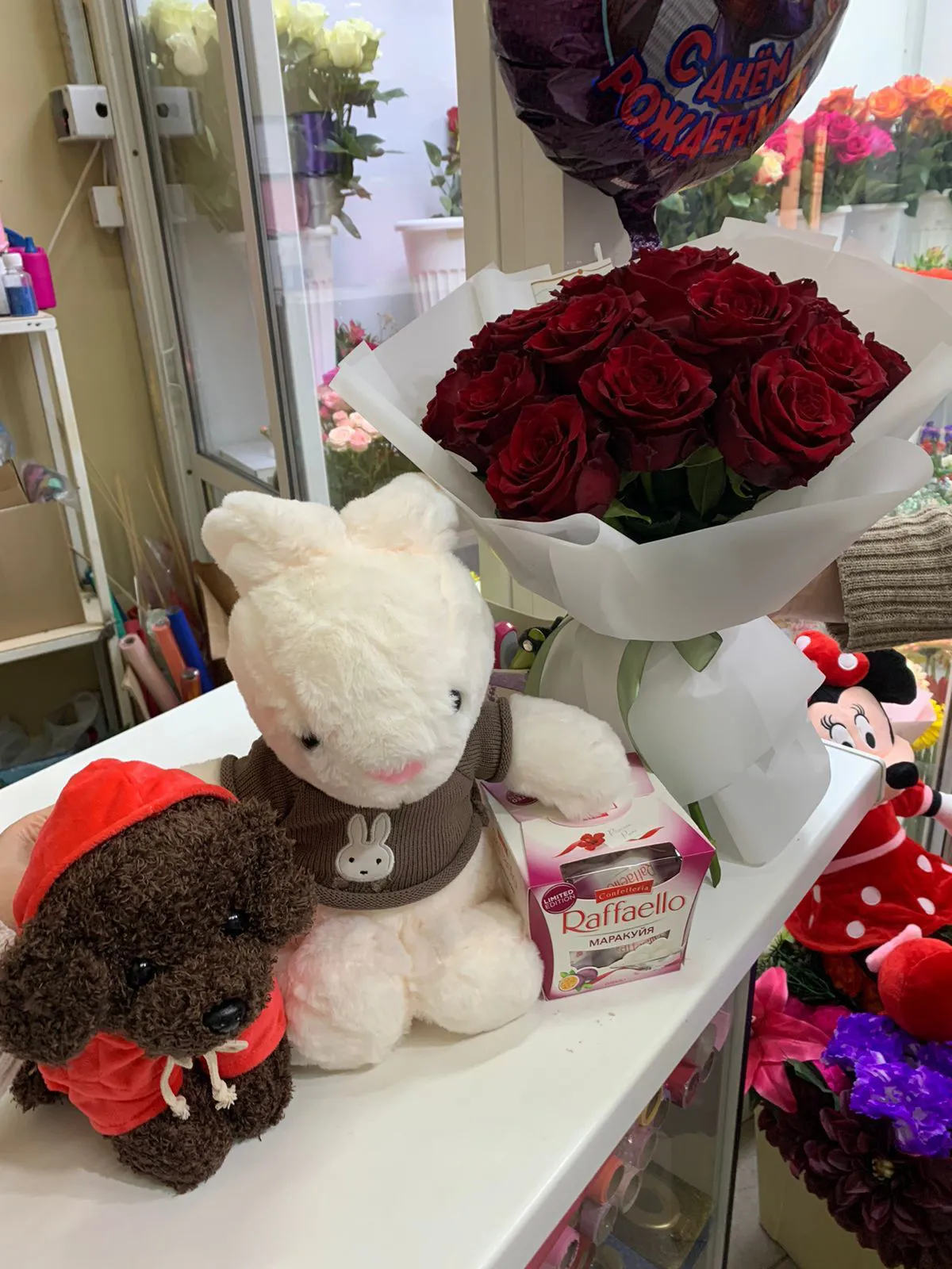 • Премиум - 25 роз, игрушка, Раффаэлло 150 гр.