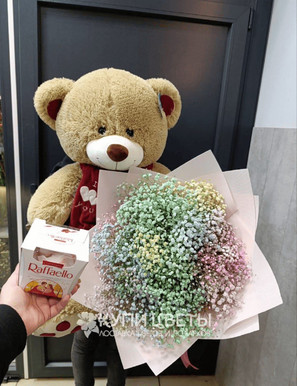 Сделайте день особенным, подарив этот великолепный букет из разноцветных гипсофил .Этот яркий и стильный подарок поднимет настроение вашим близким и любимым.