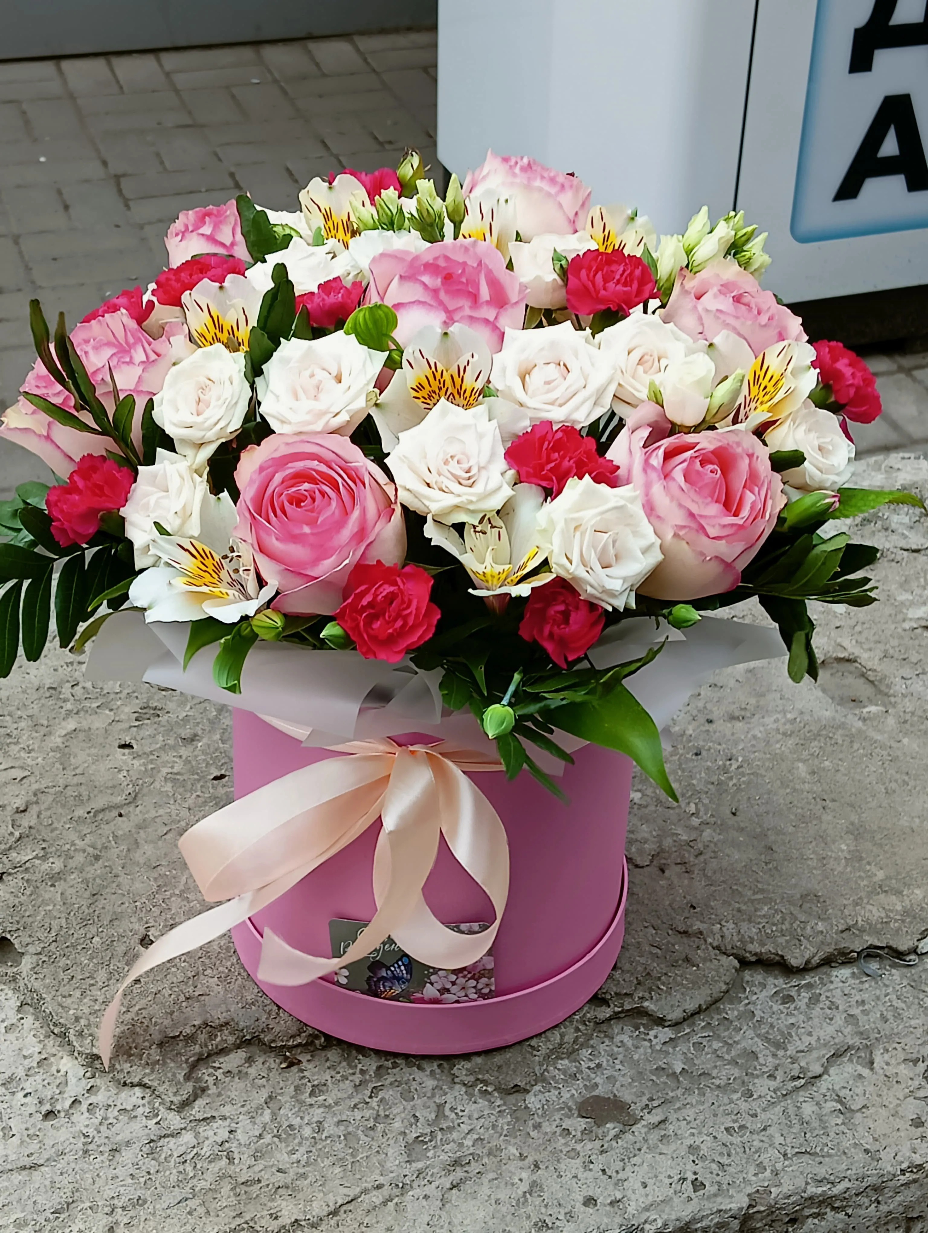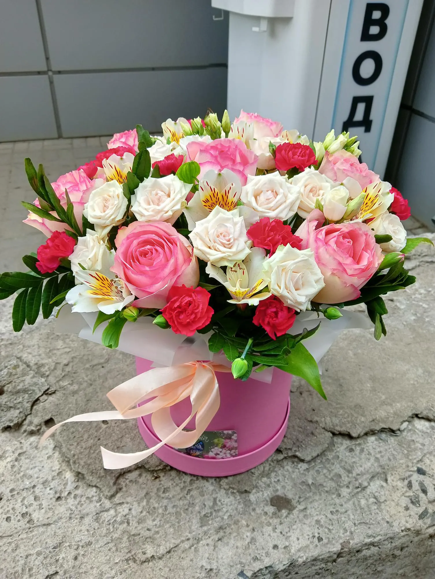 Cостав данной композиции может незначительно поменяться, из-за отсутствия некоторых позиций или сезонности цветов.