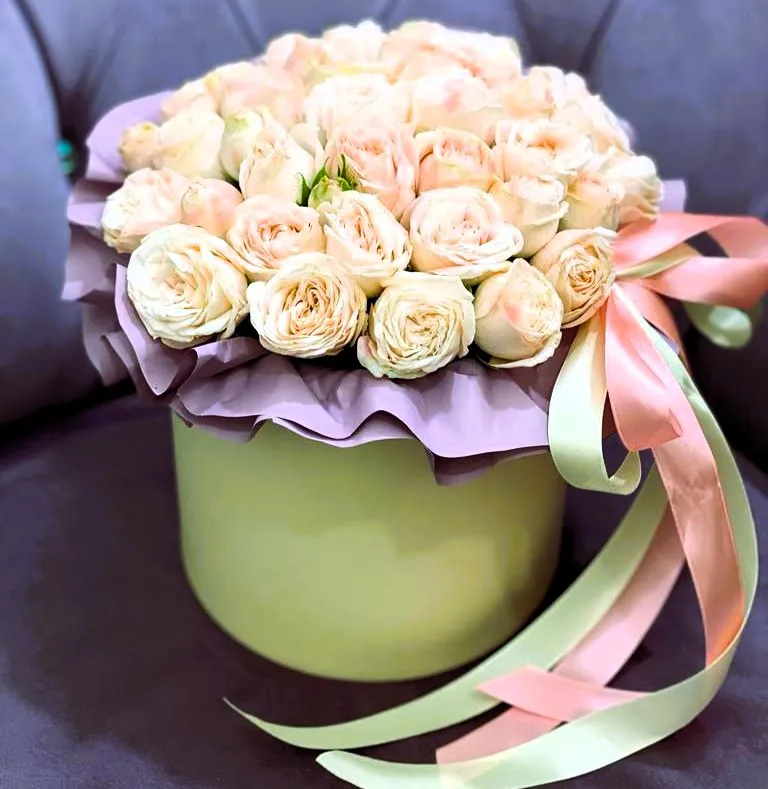 Шляпная коробка с кустовыми розами — это не просто подарок, а настоящее произведение искусства!