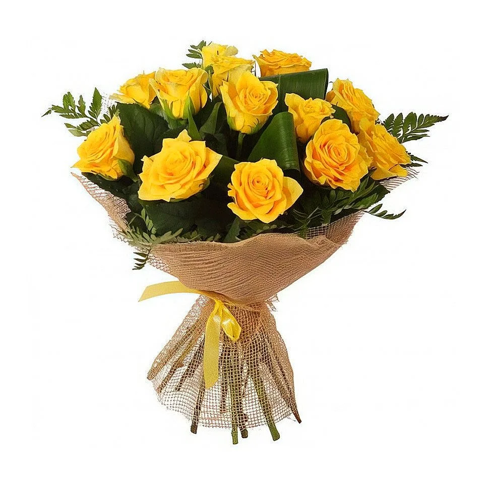 • Средний - 11 роз, зелень, оформление, упаковка, лента