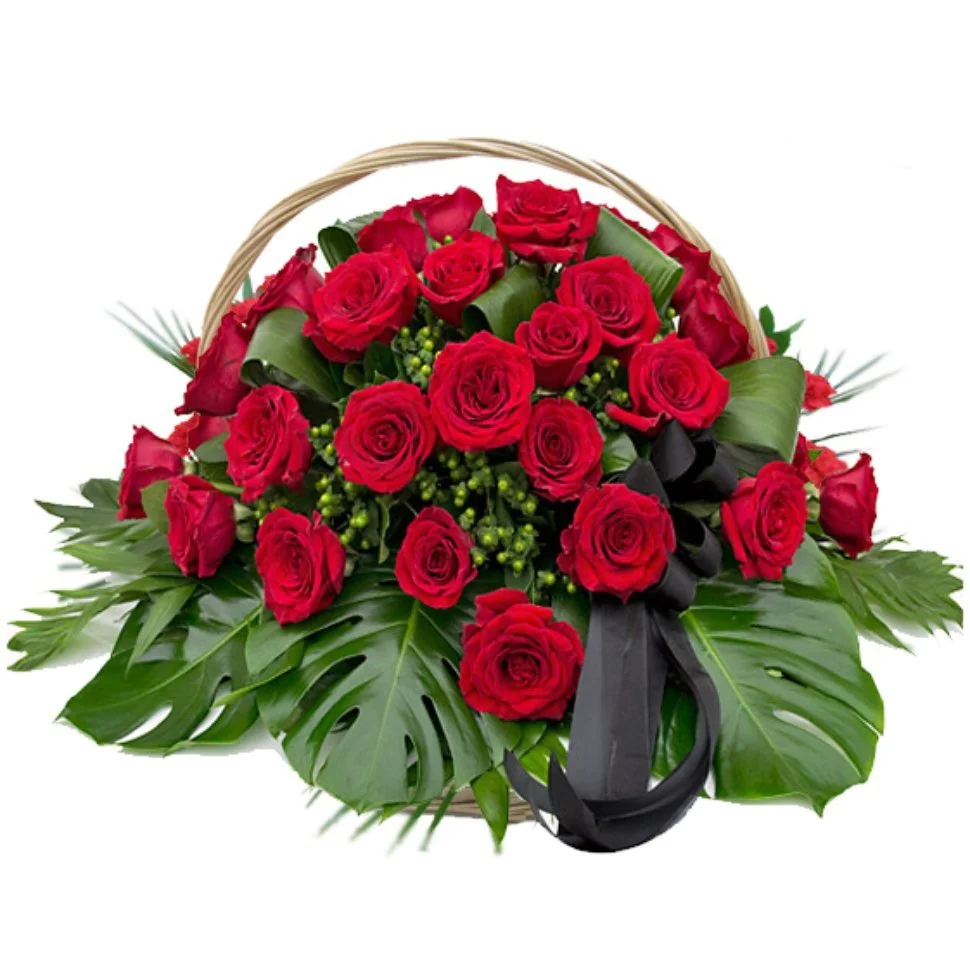 • Премиум - роза - 40 шт., зелень, оазис, корзина